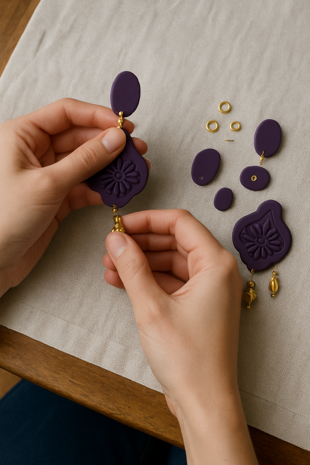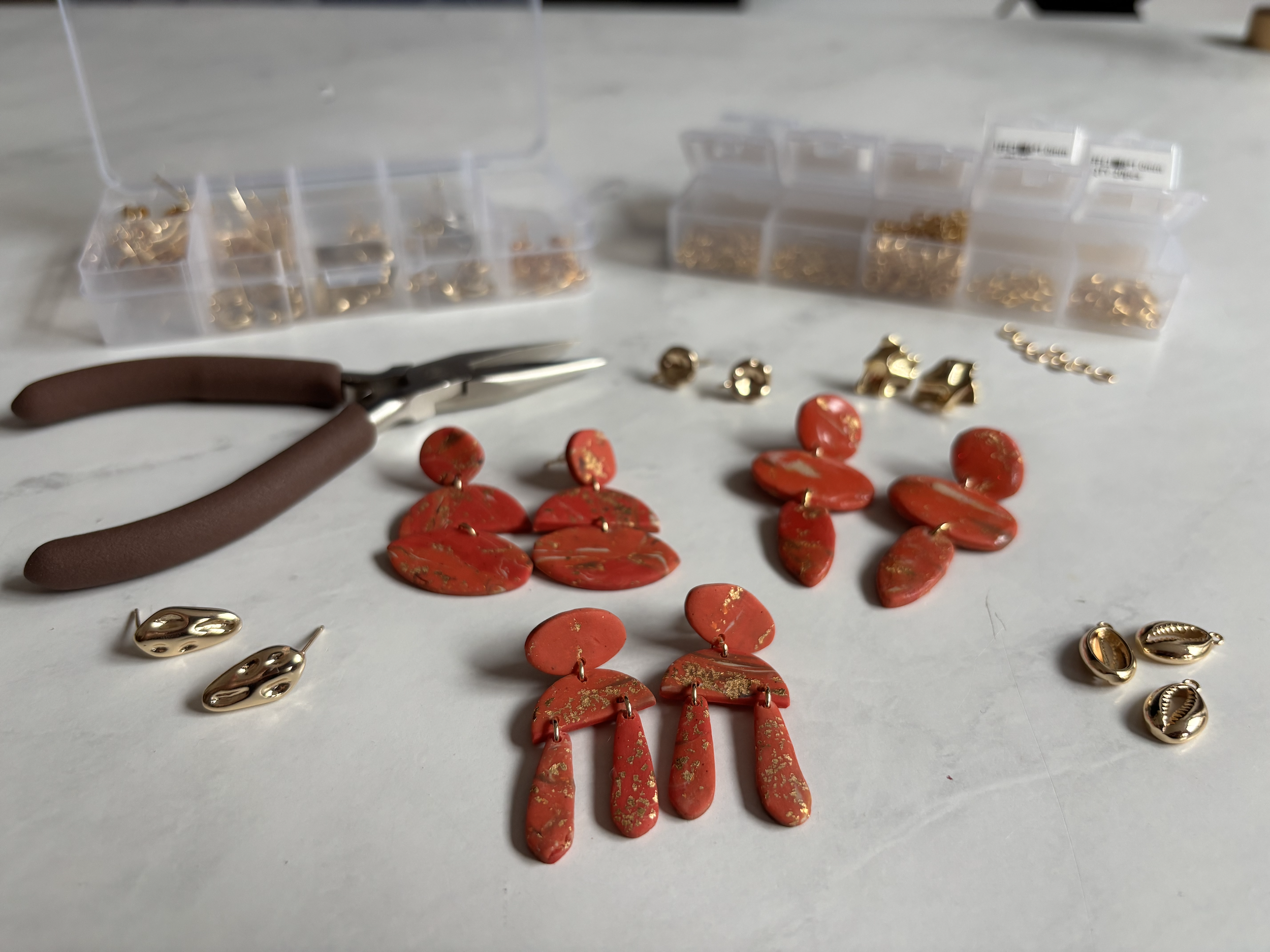 Once cooled, you’ll choose your accessories (like hoops, studs, clips) and assemble your finished piece.